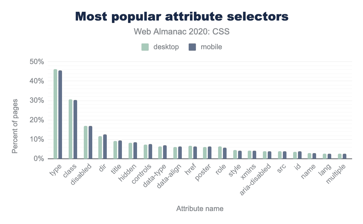 図1.11. ページの割合で最も人気のあるセレクター属性。