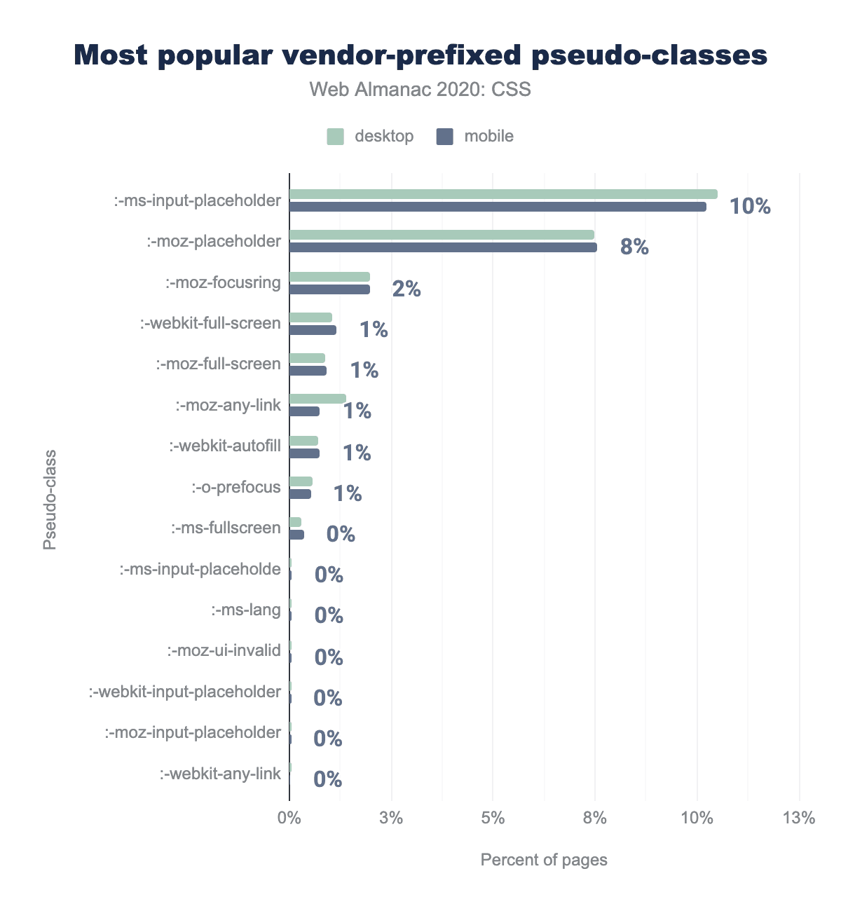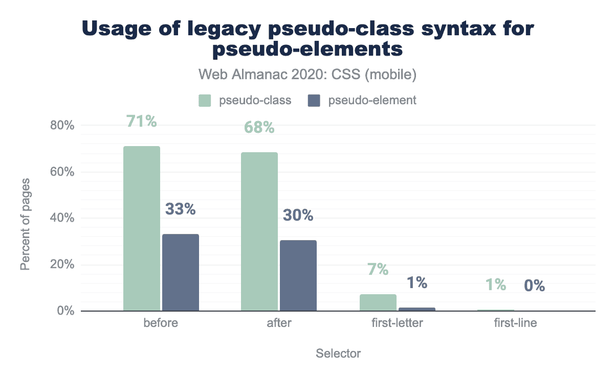 図1.12. レガシーの:pseudo-class構文を::pseudo-elementsのモバイルページの割合として使用します。