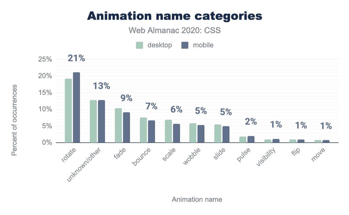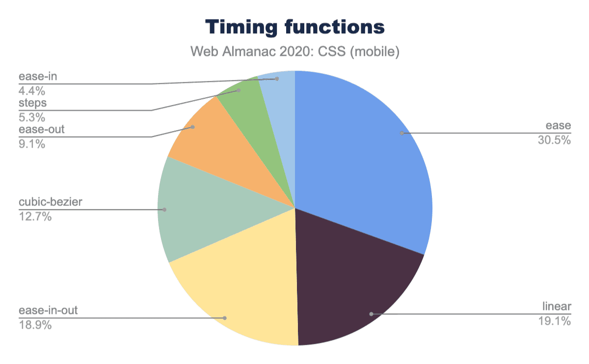 図1.20. calc()を使用するプロパティの相対的な人気度を、出現率の割合で示します。
