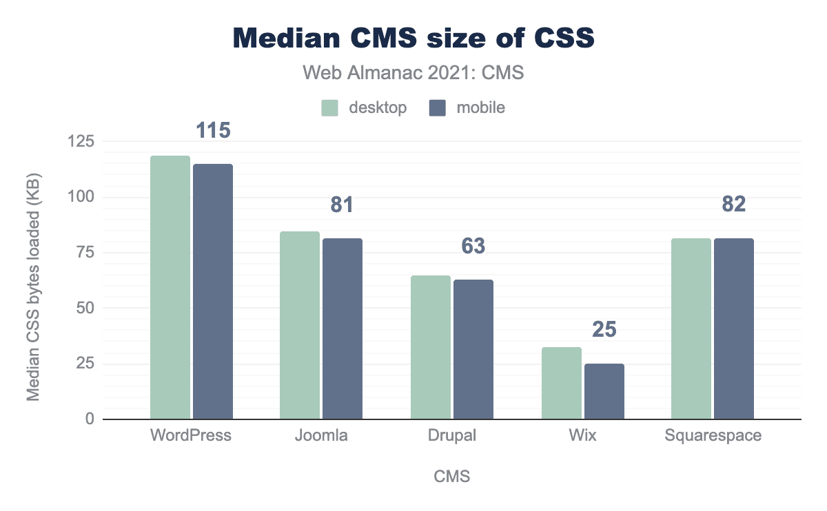 CMS間のばらつきや、これらのプラットフォーム上で構築されるユーザーコンテンツの種類が異なることを考慮し、これらの比較は慎重に行うことが重要です。