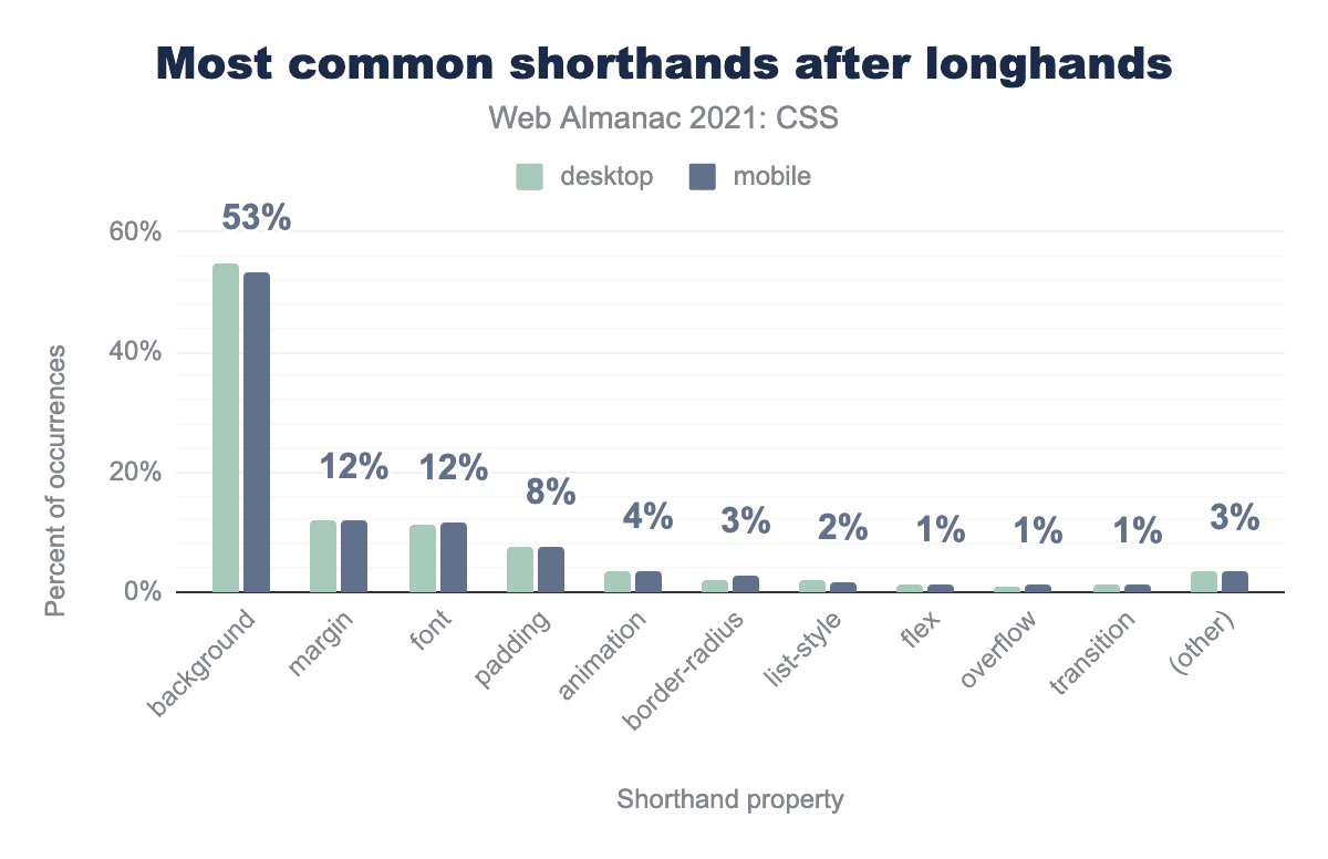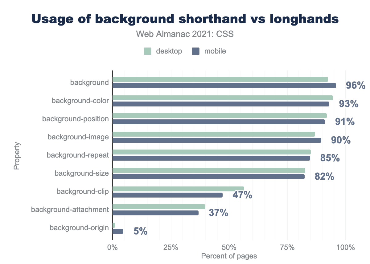 バックグラウンドロングハンドのプロパティが前節のチャートの上位にあったので、バックグラウンドショートハンドとロングハンドの使用に目を向けてみました。
