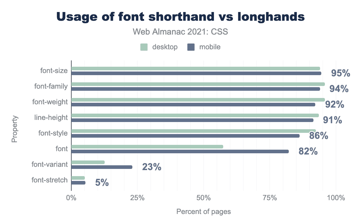 2020年と同様に、短縮形のfontは一般的なロングハンドのfont-weightと比較して、font-sizeがリードし、昨年のfont-weightから首位を奪いました。