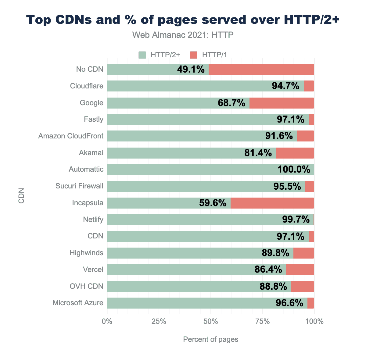 CDNは、HTTP/2のような新しいプロトコルの採用を推進する上で極めて重要な役割を果たすことが多く、統計データを見れば、このことが証明されます。