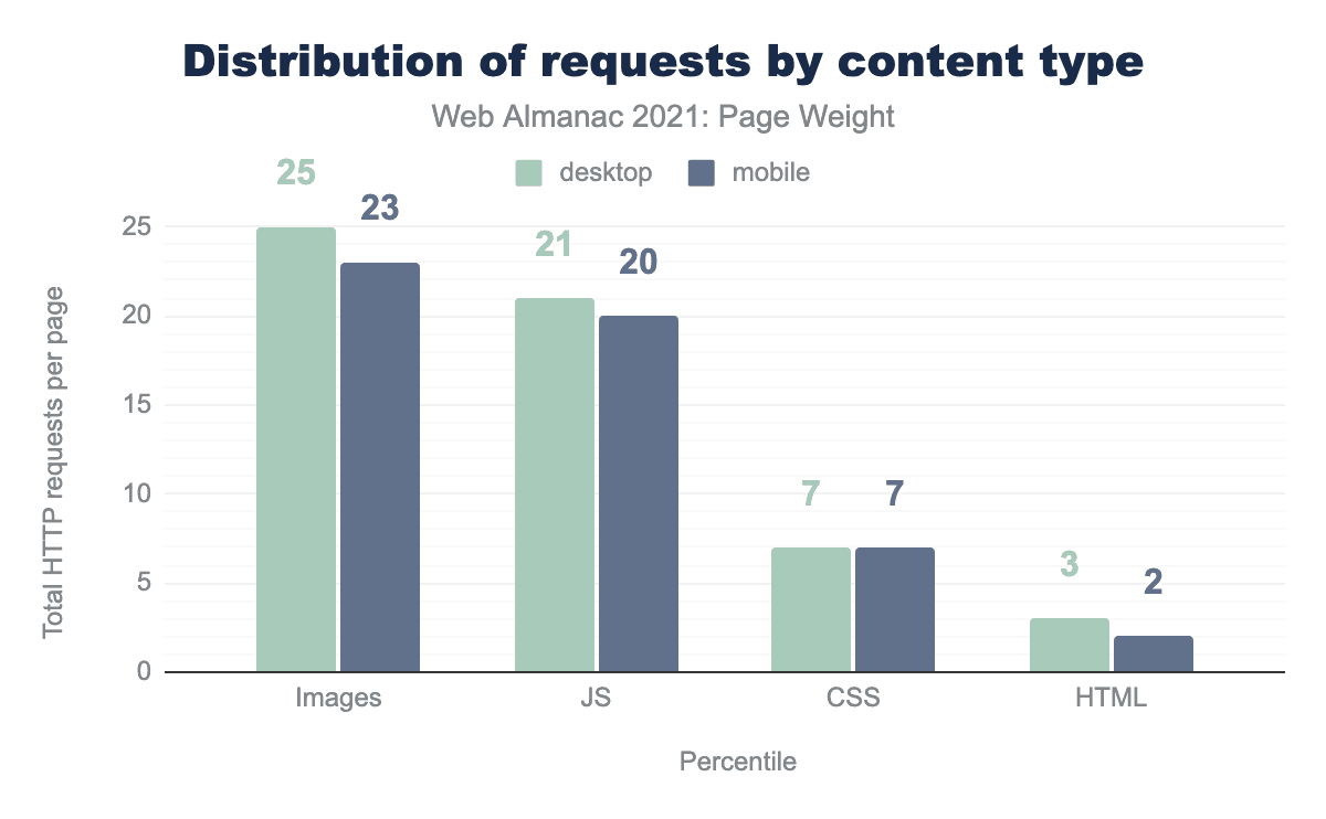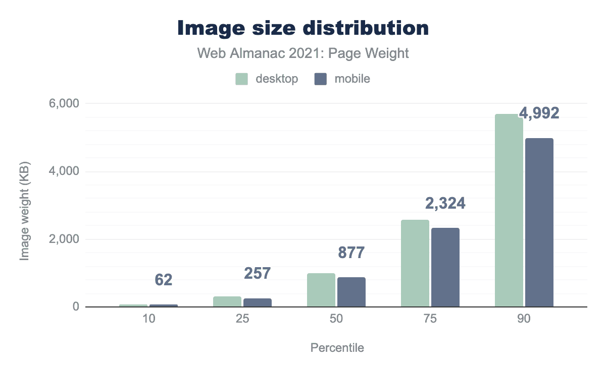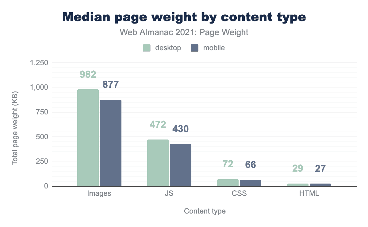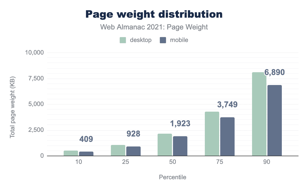 デスクトップとモバイルの両方でページの重さを見ると、これらのデバイスの機能が、異なることが多いにもかかわらず、両者の差は概して小さいです。