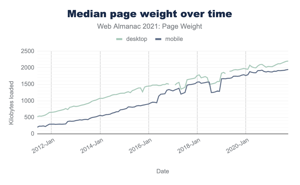 ページ重量の増加傾向は、これ以上ないほど明確です。私たちは上昇気流に乗り、その勢いが衰える気配はありません。